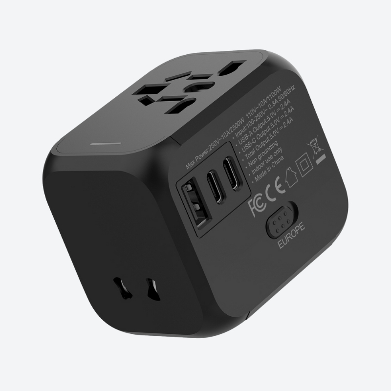 Diseño universal con voltaje amplio de 110–250 V, compatible en más de 180 países.